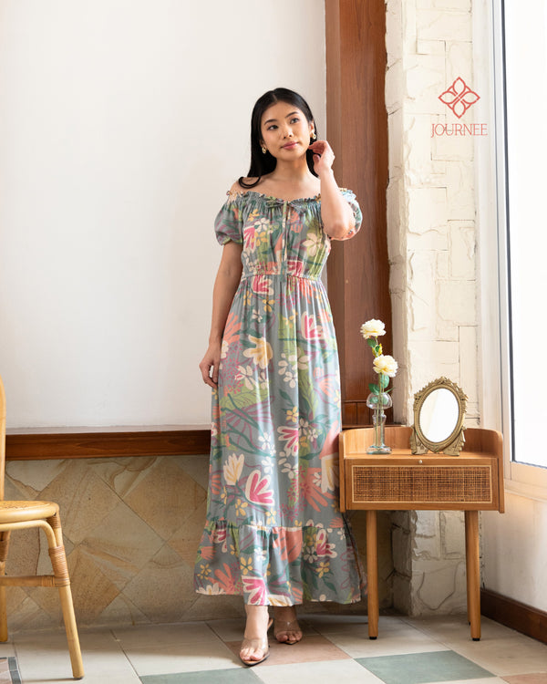 Dream Garden Sleeve Midi Blue