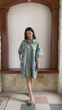 Experience ultimate comfort and modern style with the Ajila Mini Shirt Dress. This oversize batik dress features beautiful embroidery and a fern green colour making it a unique and eye-catching piece. Its roomy fit ensures maximum comfort, making it a must-have addition to your wardrobe.