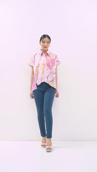 The Ahana Batik Top Lily features a free size, button-down silhouette with short sleeves and an asymmetrical cut. Its unique back design ensures that you won't find anything quite like it on the market. Get ready to make a statement, day or night!