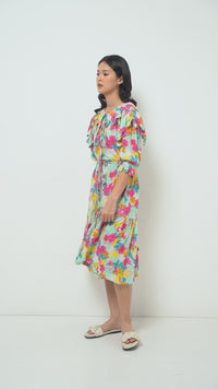 The Adream Midi Dress is designed with the finest crinkle cotton for summer fun and comfort. Featuring dreamy colours, unique scallop details, and a sash, this dress is perfect for any afternoon or evening party.