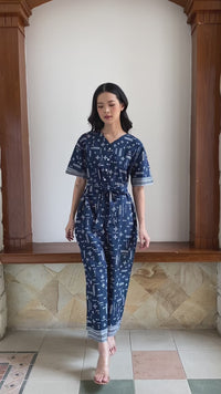 Feel the breezy comfort of this beautiful Journee batik jumpsuit. The April blue hue is perfect for any season and the slimming V neck will add a touch of elegance to any outfit. The relaxed fit and soft fabric will make you feel comfortable and chic.